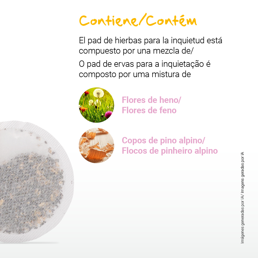 Pad de aroma herbal con efecto armonizador que favorece la sensación de seguridad y estabilidad en momentos de malestar, intranquilidad y llanto excesivo. Es muy útil para ayudar a los bebés durante la dentición.
