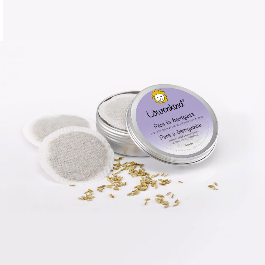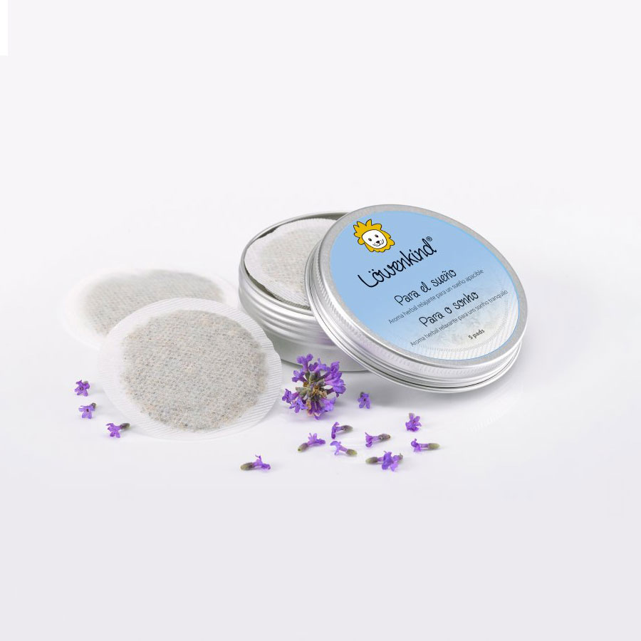 El pad de hierbas se coloca dentro de la bandana Löwenkind®. El calor corporal intensifica el aroma de las hierbas naturales.