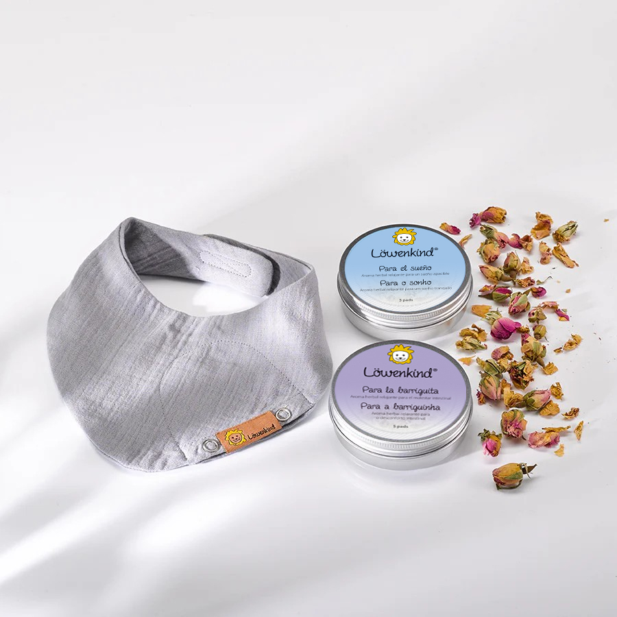 Set-inicio-bandana-mini-gris-sueño-barriguita-löwenkindSet inicio bandana Mini gris; sueño/barriguita