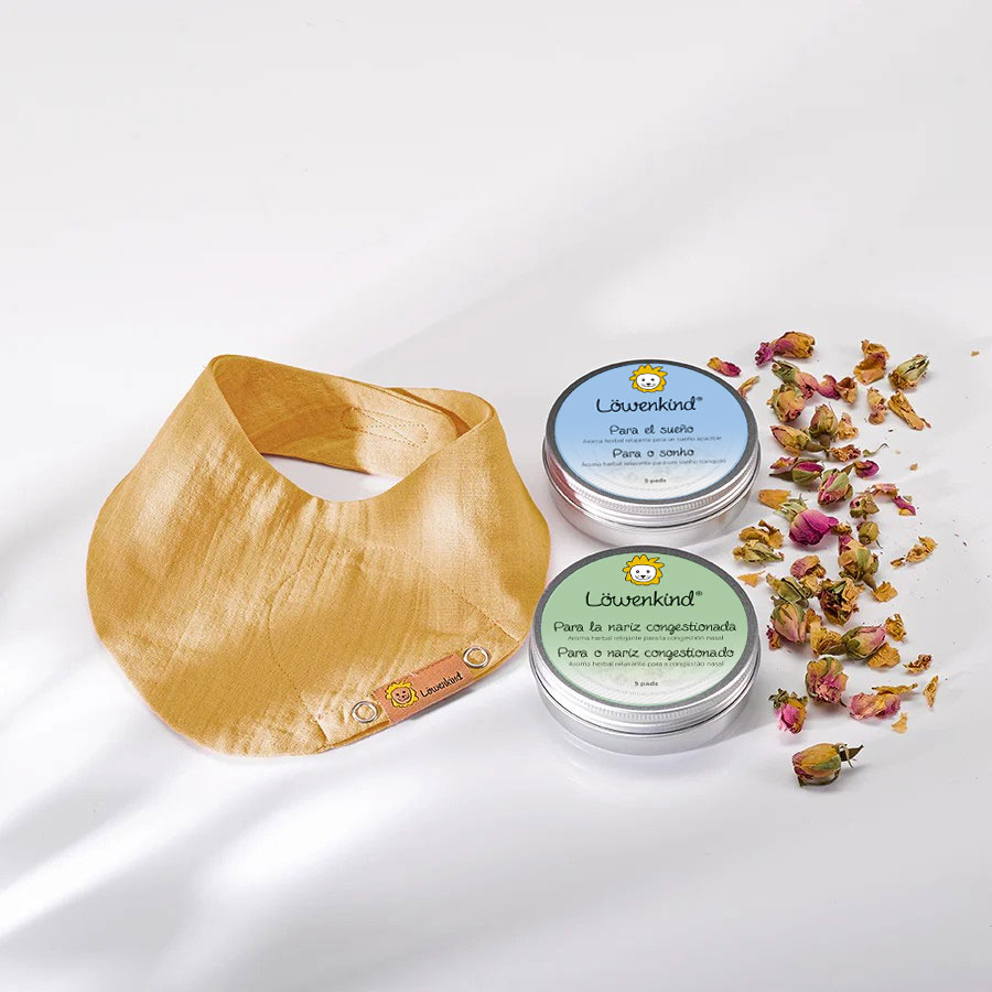 Set inicio bandana Mini mostaza; sueño/nariz congestionada
